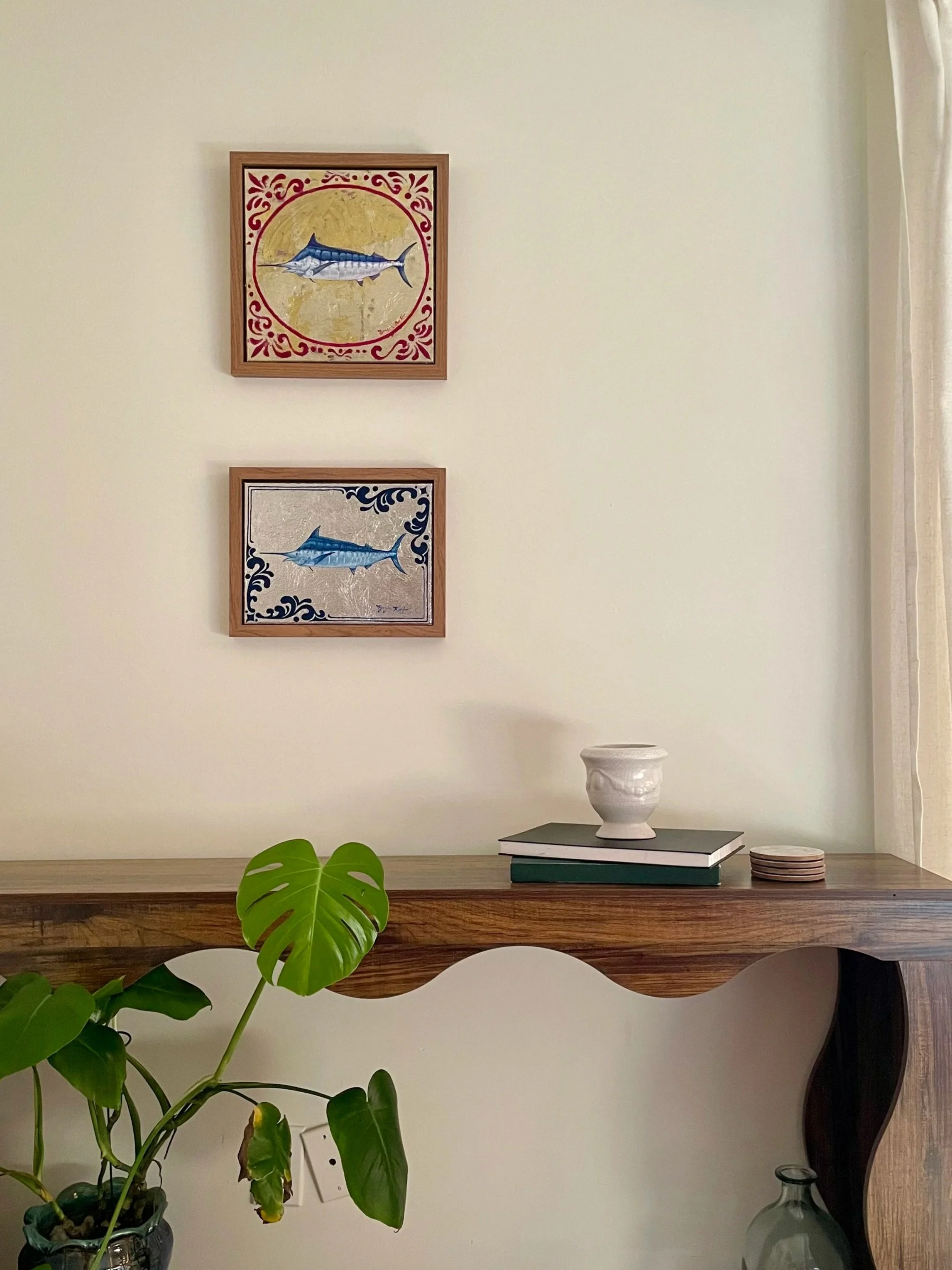 For those interested in commissioning faux teak artwork, Bryn Roff offers made-to-order pieces with limited seasonal releases.